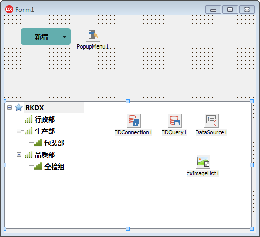 因为树形结构用的是DEV的TcxDBTreeList组件,ID/组织名称/父级ID/图片ID这四个是必须的.