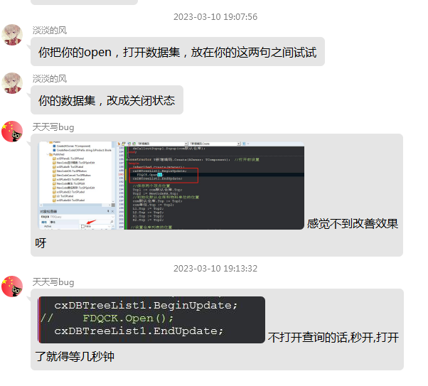 TcxDBTreeList有时候存在异常.实际表现为: 我的目录数据有三百行左右,层级也才两层,默认查询控件(FDQuery)为激活状态,打开窗口时,SQL加载至少需要5秒钟以,我问了群里了大神,他们的建议是:
