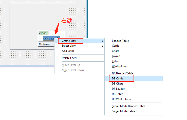TcxGrid 在创建时,会自动添加一个cxGrid1DBTableView1视图,我们需要删除它
