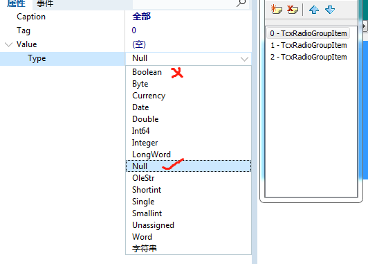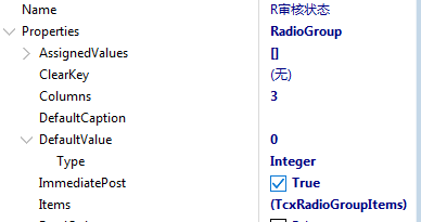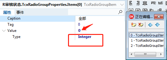 它items里面的VALUE值,代表了你点选它时, R审核状态.EditValue 上面的值,类型与Type设置相同