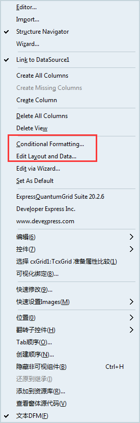 右键表格,选择 Edit Layout and Data... 或者 Conditional Fromatting...都可以.这里我们选择 Edit Layout and Data...