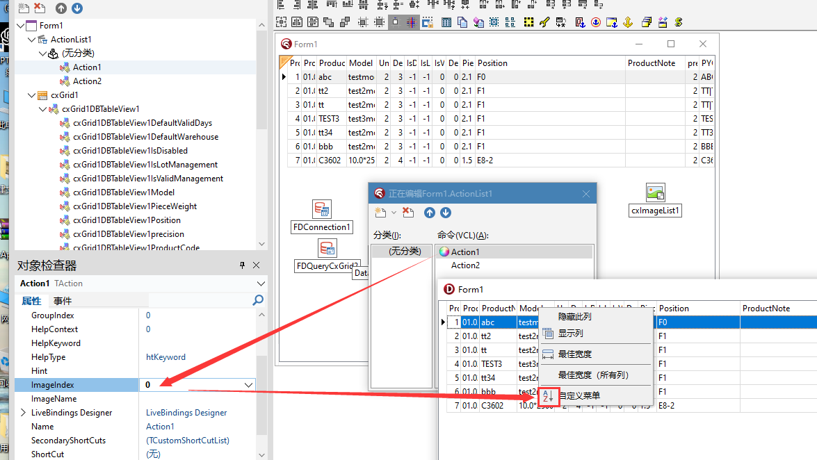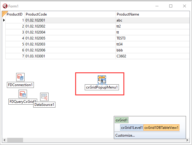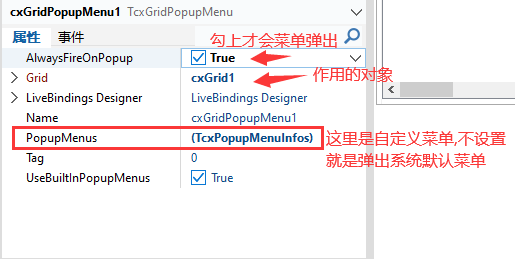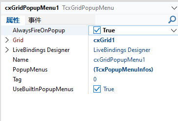 TcxGridPopupMenu控件用来给cxgrid设置右键菜单的.它长这样