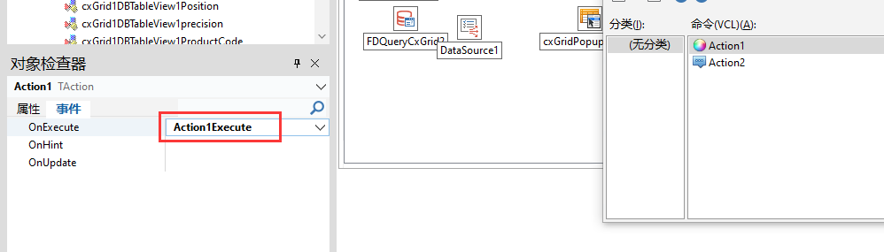 1,不要忘记了修改一下ac指令的Caption属性,不然弹出来的就是个"Action1"菜单,而不是你设置好的名称: