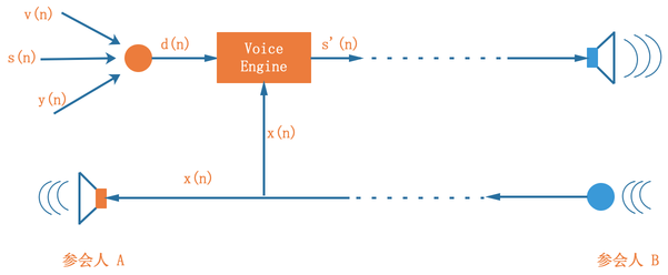 WebRTC 音频引擎能够拿到的已知信号只有近端信号 d(n) 和远端参考信号 x(n)。