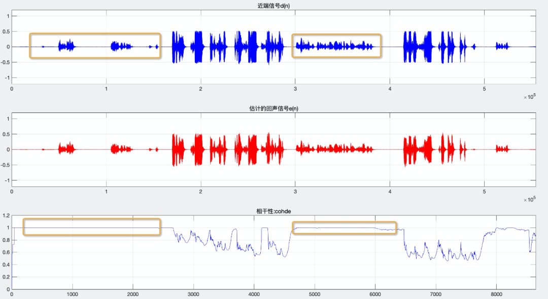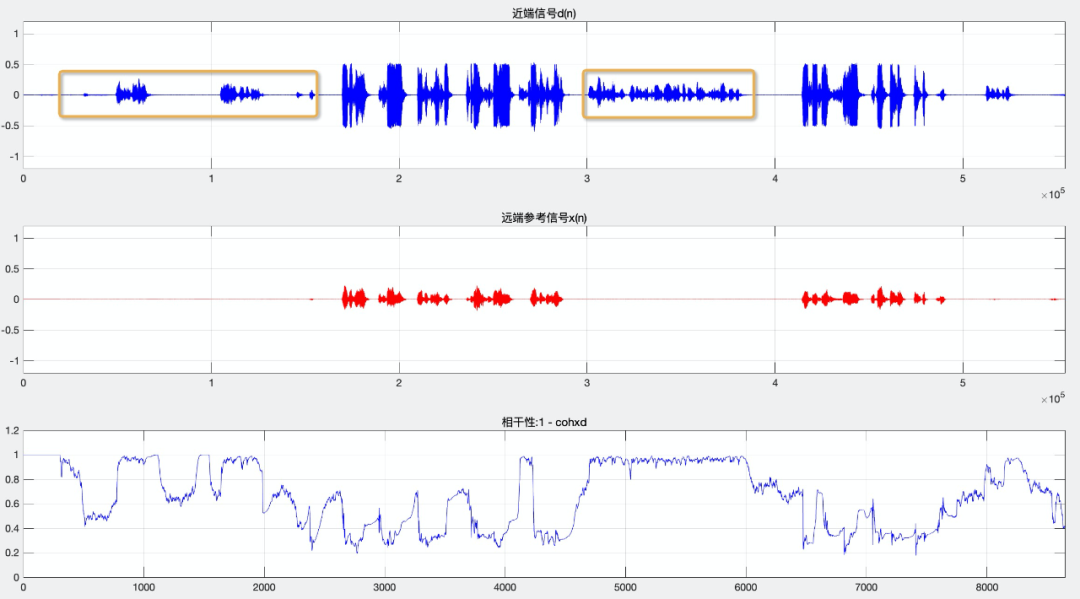 (1) 根据线性部分提供的估计的回声信号,计算信号间的相干性,判别远近端帧状态。