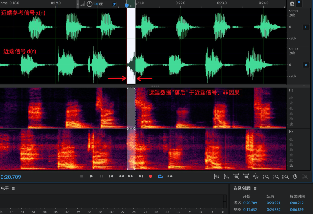 回声消除的效果与远近端数据延时强相关,调整不当会带来算法不可用的风险。在远近端数据进入线性部分之前,一定要保证延时在设计的滤波器阶数范围内,不然延时过大超出了线性滤波器估计的范围或调整过当导致远近端非因果都会造成无法收敛的回声。先科普两个问题: