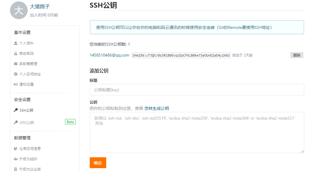 公钥就是填写你电脑生成的公钥 ,标题随便填写