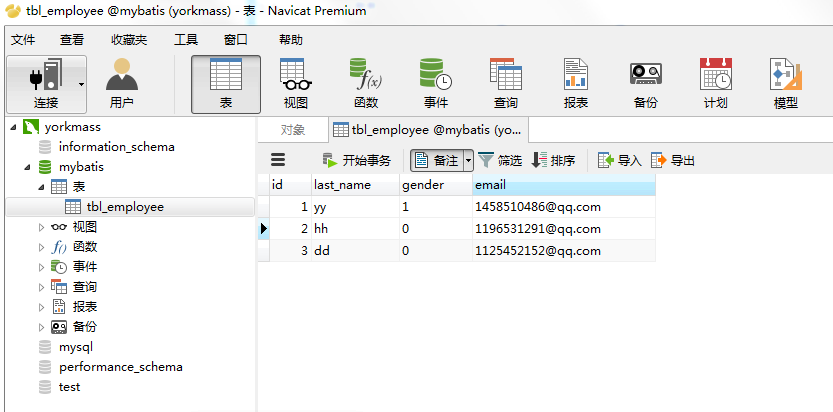 Employee [id=1, lastName=yy, email=1458510486@qq.com, gender=1]