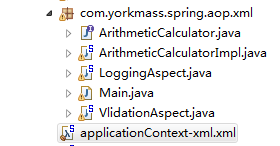 我们新建一个包:com.yorkmass.spring.aop.xml,下面新建1个接口和4个类,在src目录新建配置文件命名为: