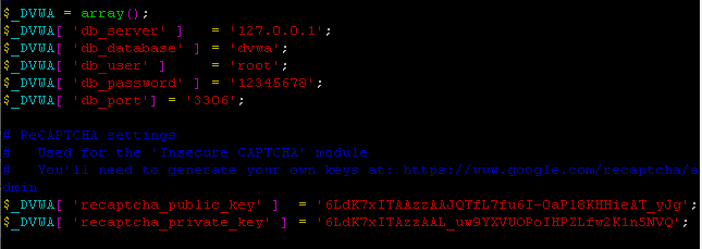 $_DVWA[ 'recaptcha_private_key' ] = '6LdK7xITAzzAAL_uw9YXVUOPoIHPZLfw2K1n5NVQ'
