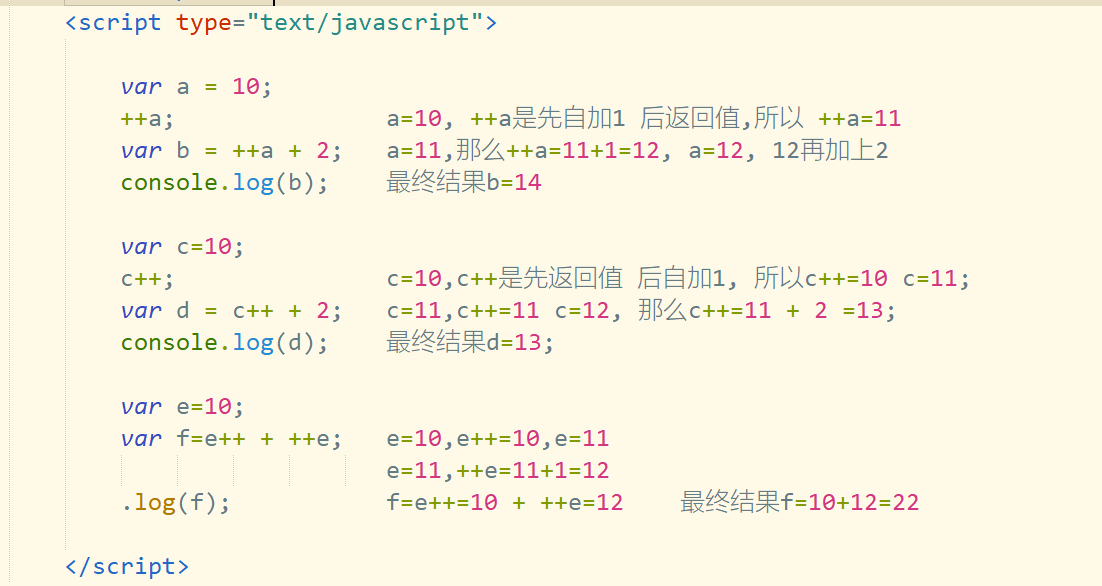 var age = 10; console.log(age++ + 10);//输出20 console.log(age);//输出11