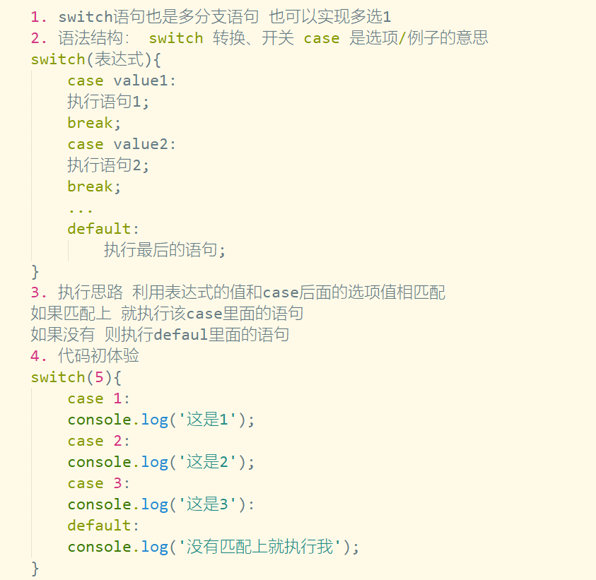 3. break 如果当前的case里面没有break 则不会退出switch 是继续执行下一个case