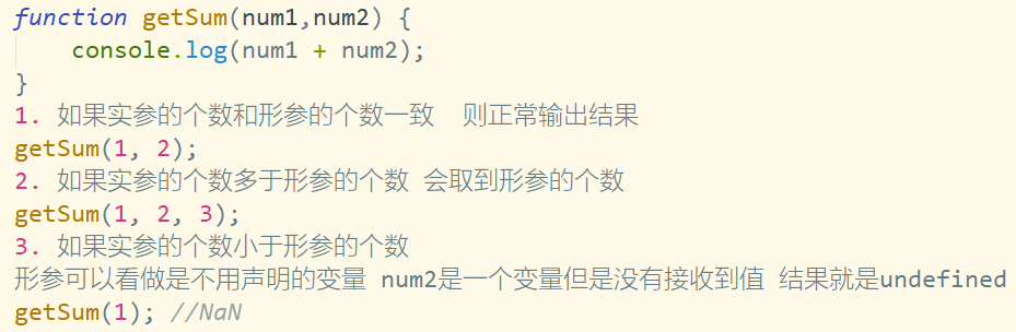| 形参 | 形式上的参数 函数定义的时候传递的参数 当前并不知道是什么 |