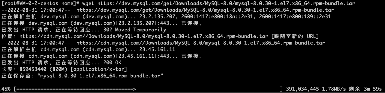 wget https://dev.mysql.com/get/Downloads/MySQL-8.0/mysql-8.0.30-1.el7.x86_64.rpm-bundle.tar