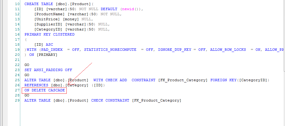 级联 删除包含外键关系中所涉及的数据的所有行。