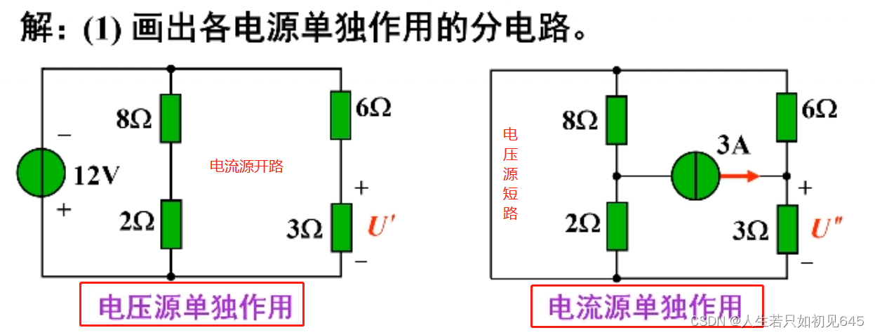 为了确定每个独立源的作用,所有的其他电源的必须进行“置零”操作: