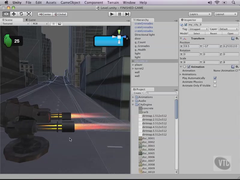 这是VTC出品的使用Unity 3D进行游戏开发的入门教程. 向你的空闲时间说再见.打造属于自己的游戏. 因为这个游戏开发要有趣得多.你会学习如何在3D空间演练你的角色.塑造和描绘游戏环境、特效、武器操作、创建菜单和用户界面等............