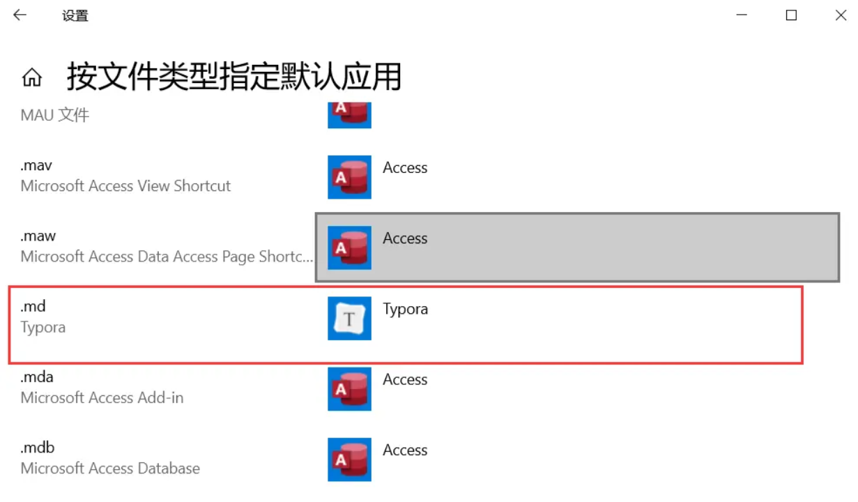 按文件类型指定默认应用,.md 为typora。这一步有点慢,耐心等待