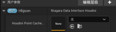 为了方便管理,也可也在用户参数中创建数据接口:Niagara Data Interface Houdini,并赋予上面三个位置。