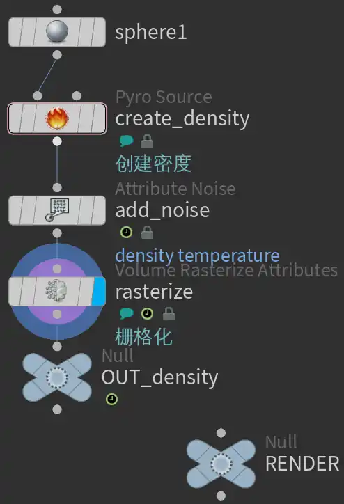 在这里,引用了 Geometry:sphere1 中生成的 VDB。