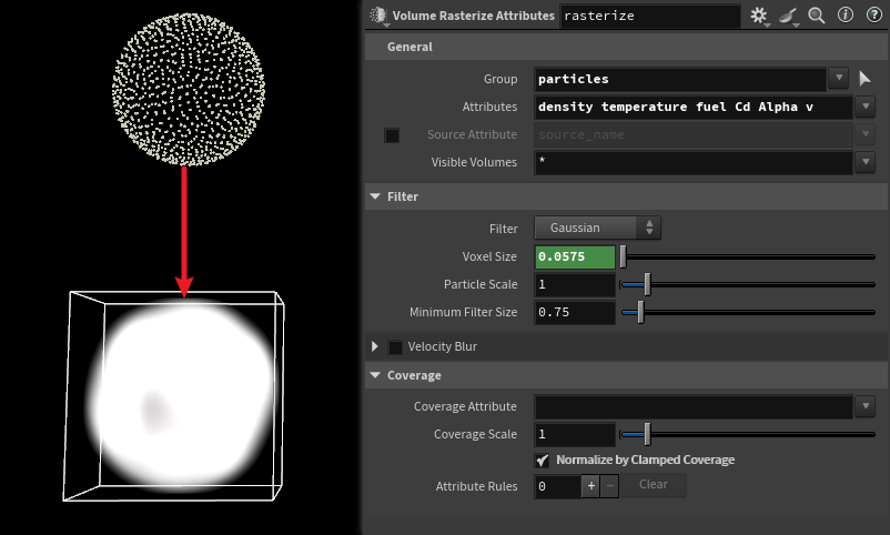 即:使用上面的 Volume Rasterize Attributes 节点中的 Particle Separation 和 Particle Scale 的值进行计算。