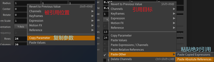 - 右键 Copy Parameter (复制参数),并在目标处 Paste Absolute References (粘贴绝对引用)