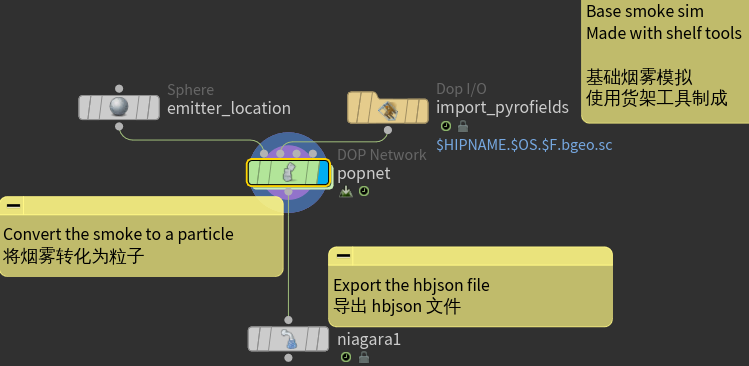 - 【这是重点】:将 VDB 模拟结果转化成点云(粒子),并输出为 Hbjson 文件。
