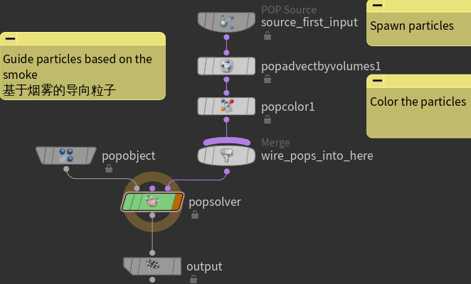 通过流体模拟的结果驱动 POP 粒子,会修改 force 、 vel 和 P 属性。