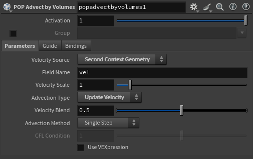- Velocity Source | 速度源:速度的来源,Context(上下文)指的是此 DOP 网络的输入。这里使用 Second Context Geometry 即:popnet 节点的第二个输入。