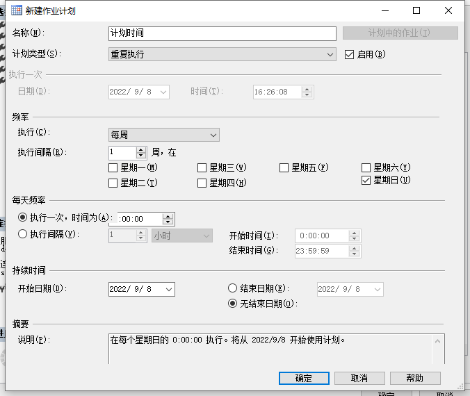我这里设置的是每周日0点开始备份,有需要的自己更改。