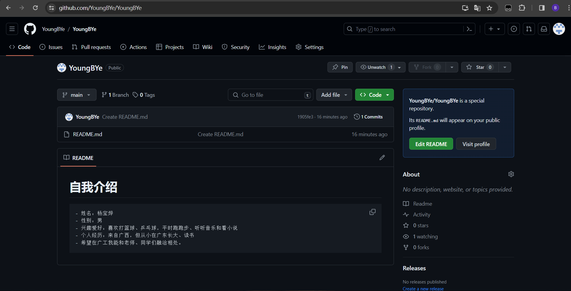 - GitHub地址: <https://github.com/YoungBYe/YoungBYe>