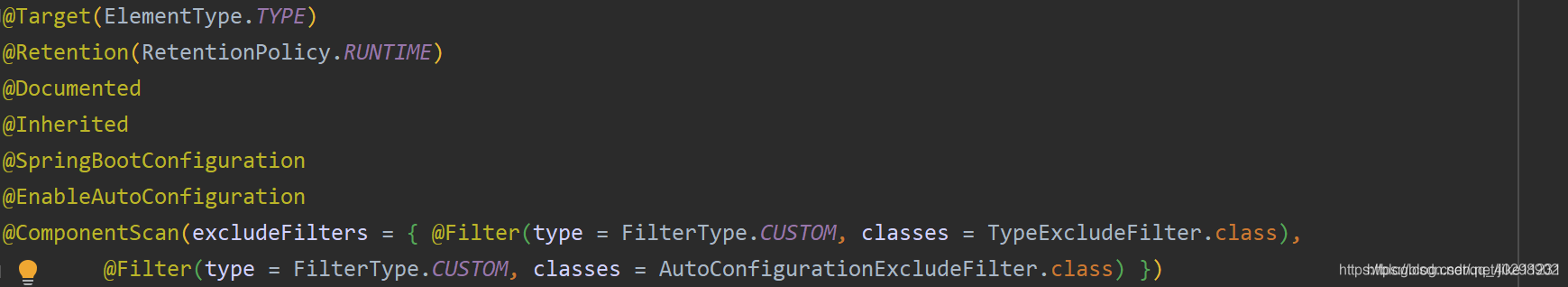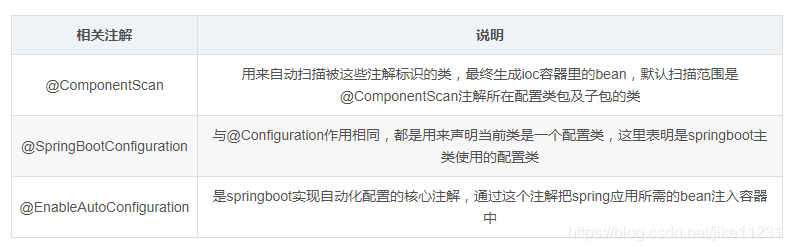 包含@Configuration、@EnableAutoConfiguration、@ComponentScan通常用在主类上;