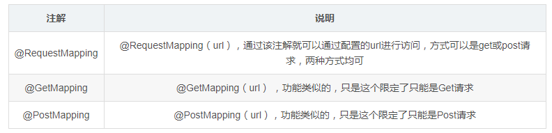 这3个注解功能也是类似的,通过这3个注解来映射请求,也就是通过它来指定控制器可以处理哪些URL请求,用在方法上,可以通过配置的url进行访问