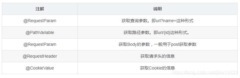 @RequestParam注解有几个比较重要的属性,required 表示是否必须,默认为 true,必须。defaultValue 可设置请求参数的默认值。value 为接收url的参数名(相当于key值)。、 - @PathVariable