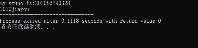 实验一 #include <stdio.h> int main() { printf("my stuno is:202083290328, C\n"); printf("2020yxqniubi); return 0; }