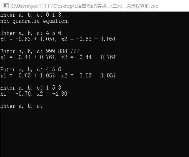 printf("not quadratic equation.\n\n");