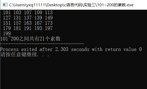 printf("\n101~200之间共有%d个素数",p);