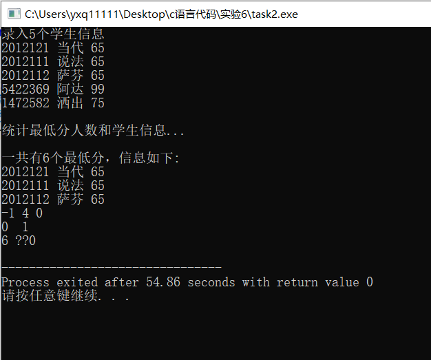 printf("\n一共有%d个最低分,信息如下:\n", count);