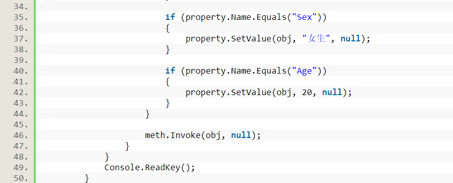 (6) 使用PropertyInfo了解属性的名称、数据类型、声明类型、反射类型和只读或可写状态等,获取或设置属性值。