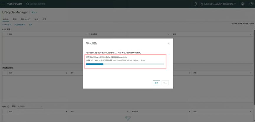做完上述的评估后,下面是详细的升级步骤,本次演示的升级是通过 vCenter Lifecycle Manager 升级加补丁整个操作步骤