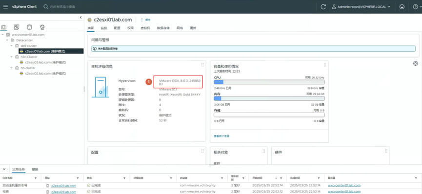 26、选择要修复的ESXI主机,点击修复(过程需要重启2次)