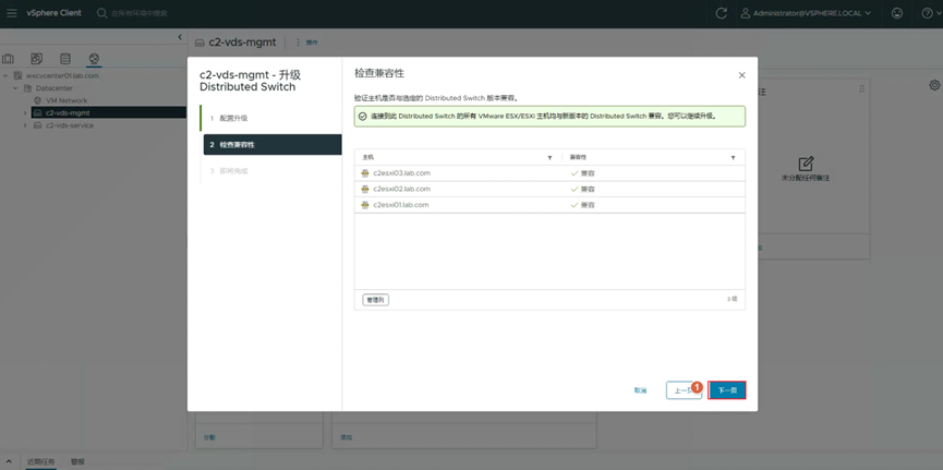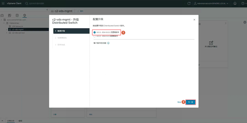 29、当所有的ESXI都升级完成后,需要把VDS的版本也给升级至8.0的版本,升级不影响当前的业务