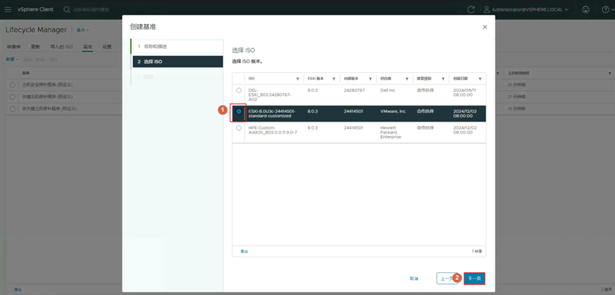 3.导入升级的ISO(若之前使用的是OEM的ESXI镜像,在升级的也需使用OEM的镜像)通过 esxcli software profile get 进行查看,如果 Name 和 Vendor 字段包含厂商名称(如 DellEMC、HPE、Lenovo 等),即为 OEM 镜像。