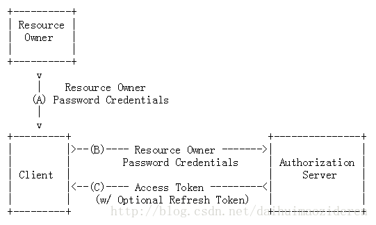 (B)客户端将用户名和密码发给认证服务器,向后者请求令牌。