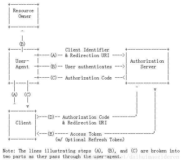 - (A)用户打开客户端以后,客户端请求资源所有者(用户)的授权。