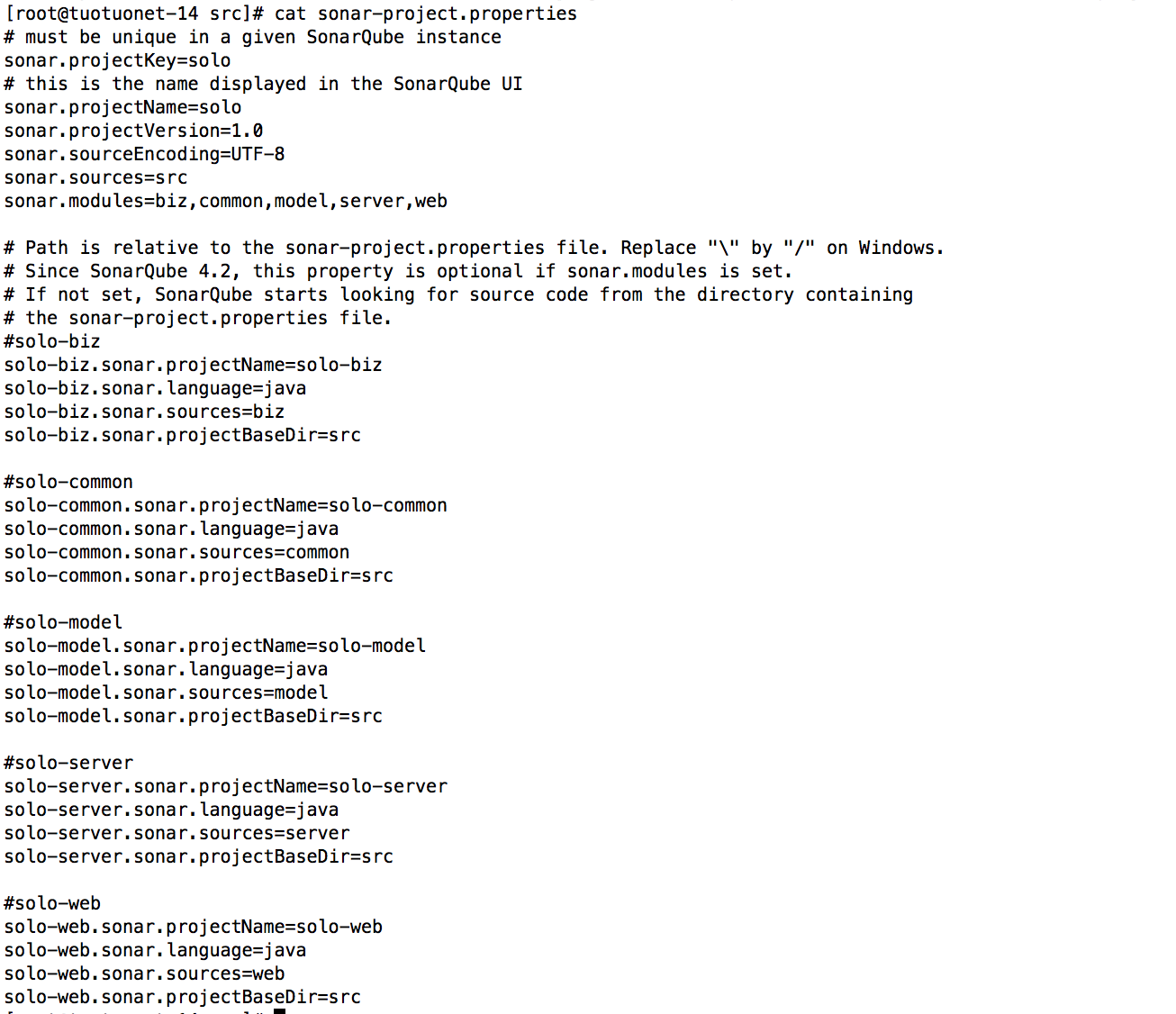 sonar-project.properties,以下配置针对多项目结构的工程