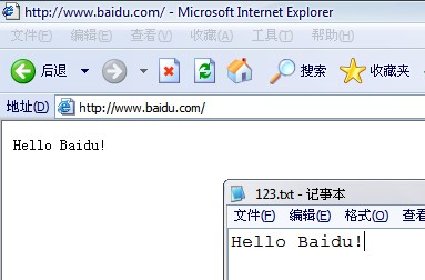 我把本地发起的http://www.baidu.com请求,定位到一个桌面文件:123.txt