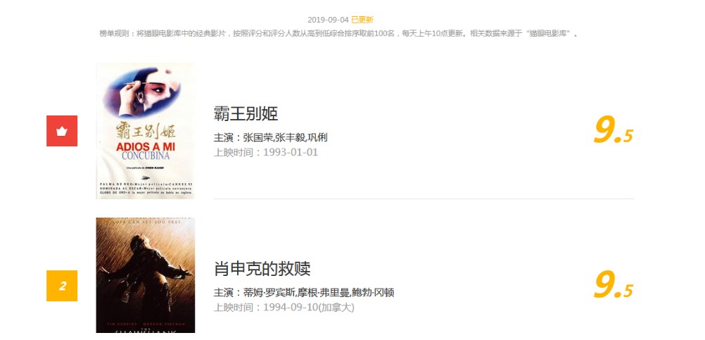 - 抓取猫眼电影总排行榜Top100电影单