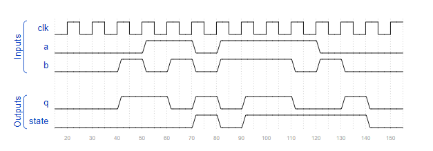 state状态为0,q为a,b异或结果